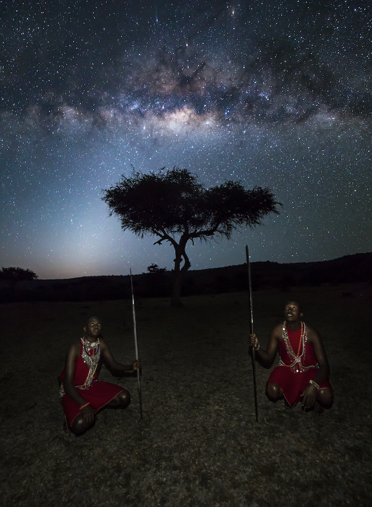 a masai warrior and a hot air balloon